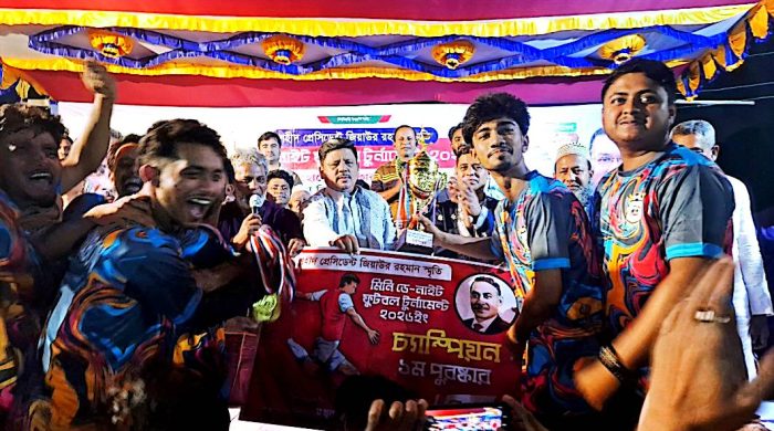 নিজস্ব প্রতিবেদক : জামালপুরের বকশিগঞ্জে এক উৎসবমুখর পরিবেশে ফুটবল টুর্নামেন্টের ফাইনাল খেলা অনুষ্ঠিত হয়েছে। মঙ্গলবার (২৪ মার্চ) বিকেলে পাখিমারা খাতেমুন মঈন মহিলা ডিগ্রি কলেজ মাঠে এ খেলার আয়োজন করা হয়।