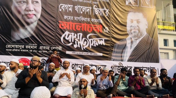 গাজীপুর প্রতিনিধি : বাংলাদেশ জাতীয়তাবাদী দল (বিএনপি)-এর চেয়ারপার্সন ও সাবেক প্রধানমন্ত্রী দেশনেত্রী বেগম খালেদা জিয়ার রুহের মাগফেরাত কামনায় গাজীপুরের টঙ্গীতে বিশেষ দোয়া ও মিলাদ মাহফিল অনুষ্ঠিত হয়েছে। বুধবার দুপুরে টঙ্গীর
